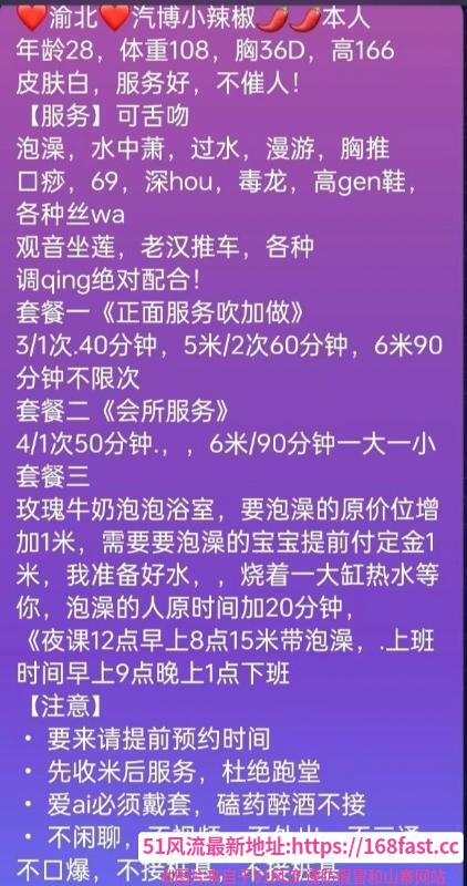 凡是有要求路费/定金/保证金/照片验证/视频验证等任何提前付费的行为,千万不要上当。同时也请注意仙人跳,在寻欢前不要露富和带过于贵重随身物品。本站为分享信息并不对寻欢经历负责,碰到有问题的信息,请及时举报给我们删除信息。部分小姐姐较为敏感,所以请在联系对方时不要透露此条信息来源。https://bz904.cc/item/224186